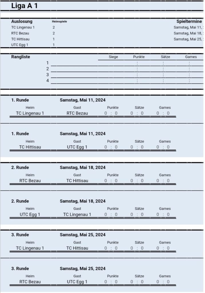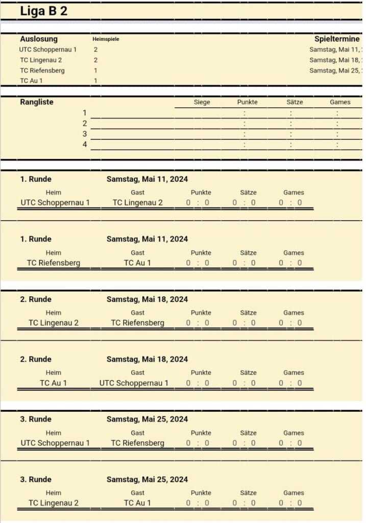 Das sind die Termine für die Gruppenspiele unserer 1. und 2. Mannschaft des TC Lingenau.